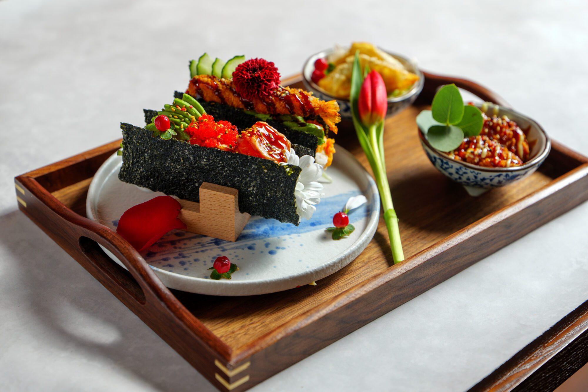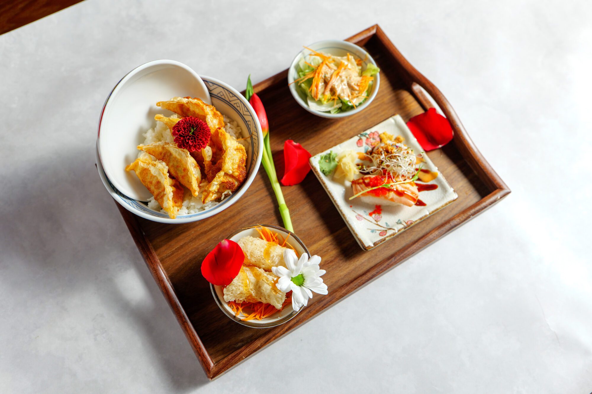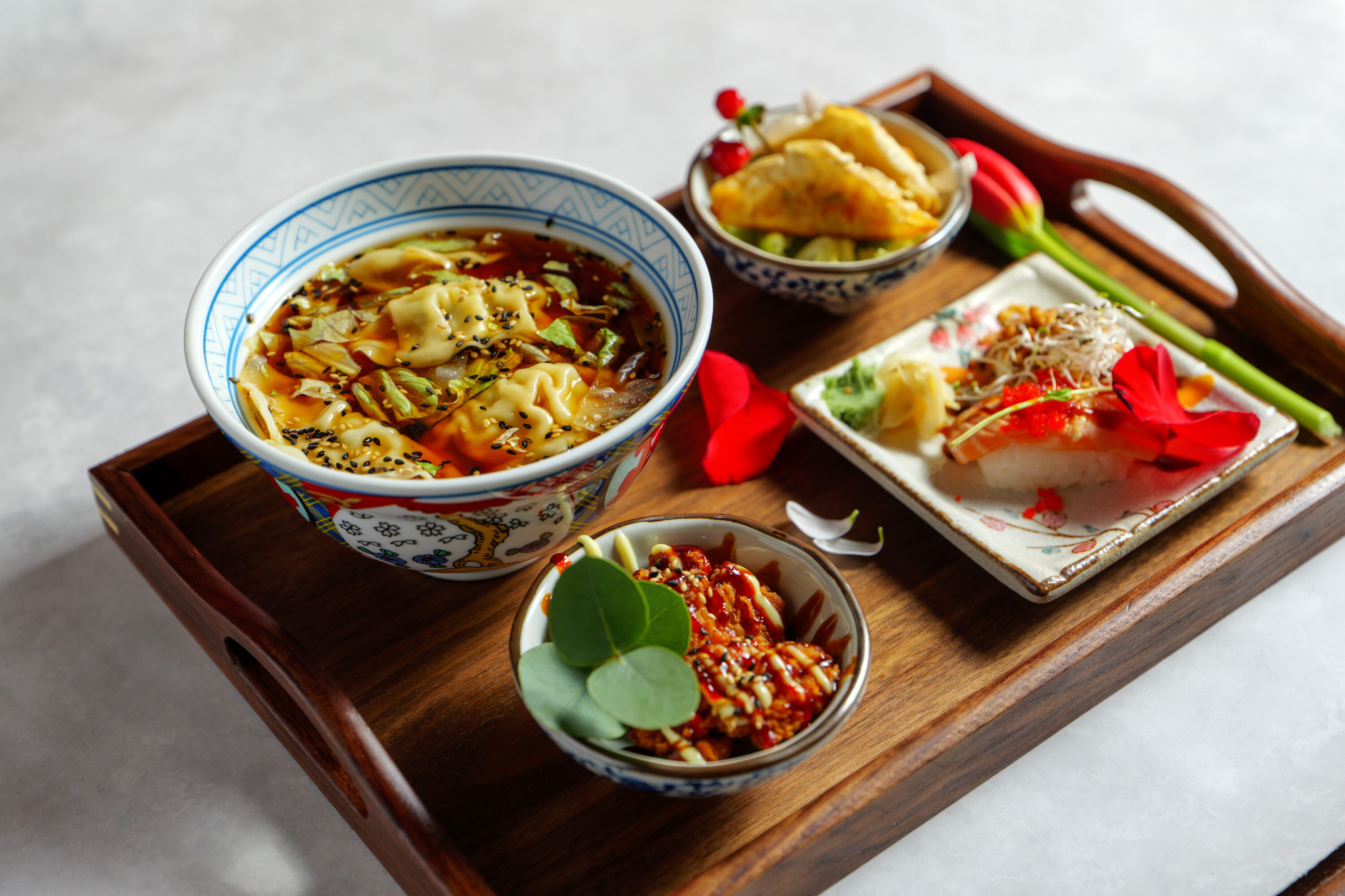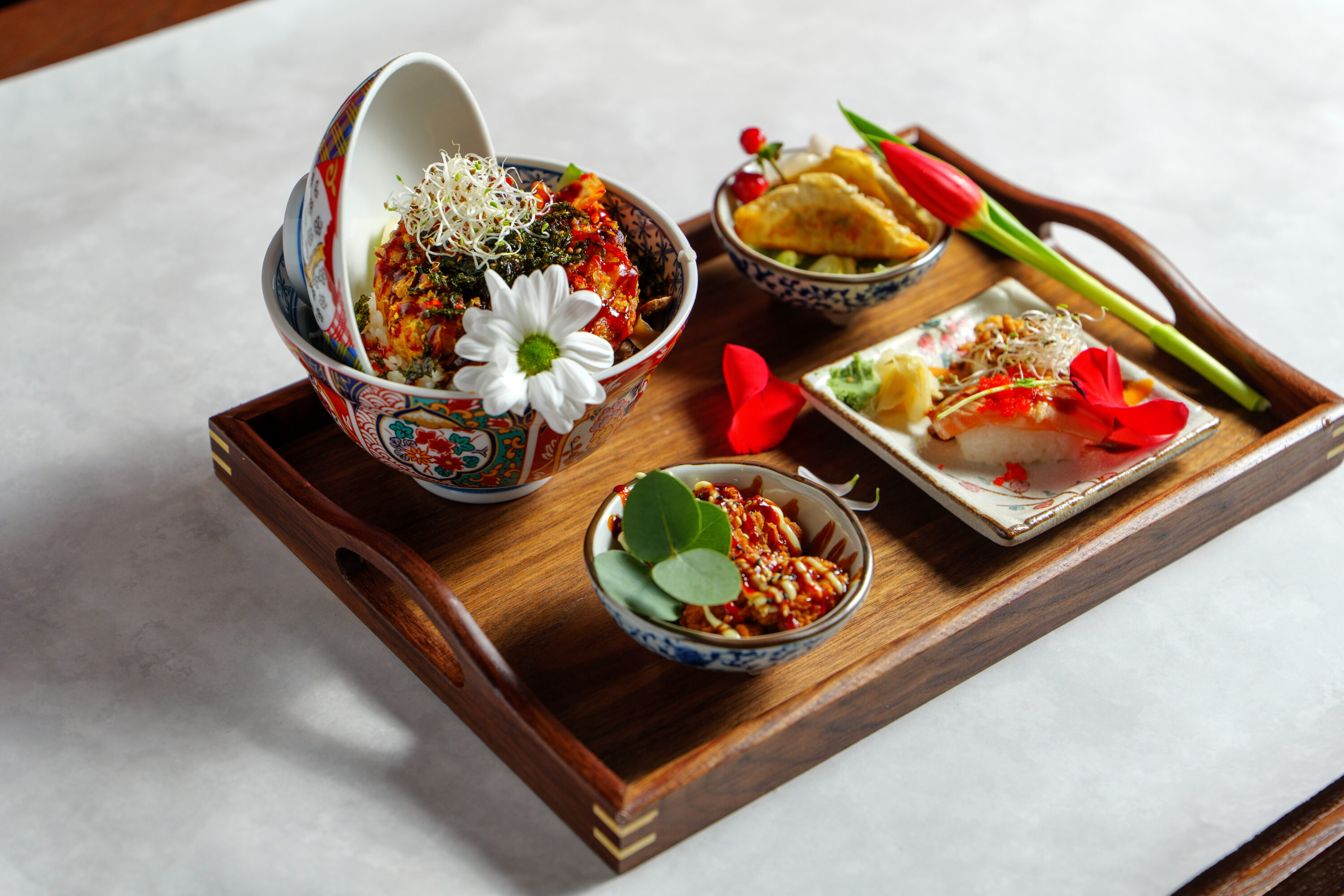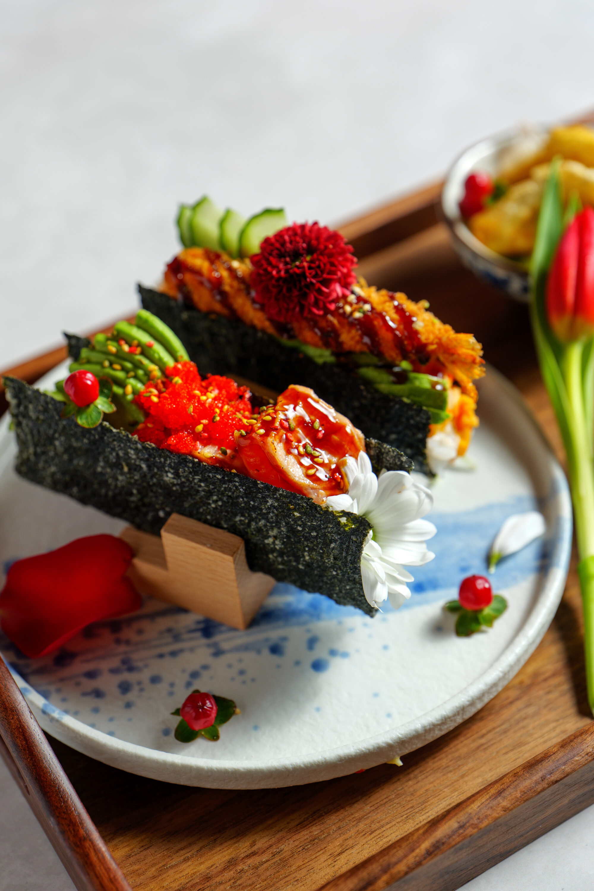 Farsta Boka bord Farsta SMÅTT & GOTT おかず 1. Kimchi55:- 2. Goma WakameSjögrässallad 59:- 3. Sashimi lax55:- 4. Halstrad tuna bonitoHalstrad tonfisk 55:- 5. Ebi Katsu50:- 6. Friterade kycklingvingar59:- 7. OkonomiyakiJapansk skaldjursomelett 59:- 8. Edamamebönor55:- 9. TakoyakiFriterade bläckfiskbollar 89:- 10. Ebi fryFriterade räkor 69:- 11. KaraageFriterad kyckling på japanskt vis 89:- 12. GyozaFriterad gyoza 89:- 13. KakiageFriterade grönsaker 89:- 14. TsukuneGrillade kycklingbollar 89:- 15. Friterad tofu69:- 16. Sushi mix 6 bitar85:- 17. Grillad lax 6 bitar110:- 18. Friterad lax/tuna roll 6 bitarAvokado, lök, lax/tuna friterad hel rulle 109:- 19. Tempura deluxe 6 bitarAvokado, friterade räkor, sallad, toppad med grillad lax 109:- 20. Dragon roll 6 bitarLax, philadelphia, avokado, rödlök, toppad med grillad lax 109:- 21. California deluxe 6 bitarKrabbröra, gurka, avokado, toppad med grillad lax 109:- 22. Lax bowl109:- 23. Grillad lax bowl109:- 24. Tuna bowl119:- 25. Sashimi Moriewase 12 bitar12 bitar kockens val 169:- 26. Combo6 bitar nigiri sushi och 6 bitar sashimi 190:- 27. Hitokuchi Ryori6 olika små bowl (kockens val) 249:- 28. Taco sushiVälja mellan halstad lax ,friterad räkor eller stekt biff. 69:- VARMRÄTTER 単品料理シリーズ Oyakodon 160 :-Friterad kyckling med stekta ägg, lök Gyudon 160:-Strimlat nötkött med Gyudon sås Kyckling Donburi 160:-Friterad kyckling med stekta ägg, grönsaker, små rätter Ramen 159:-Japanska nudelsoppa Yakisoba 165:-Stekta japanska nudlar med grönsaker. Välj mellan kyckling eller vegetarisk. Yakiniku Donburi 160:-Nötkött med stekt ägg, grönsaker, små rätter Cha-Han 160:-Stekt ris med kyckling eller biff Geki Gyu Men 159:-Japansk kryddstark nudelsoppa med biff TEISHOKU Teishoku Yakiniku 185:-Yakiniku, 2 bitar sushi,2 smårätter Teishoku Gyoza 185:-Friterad dumplings,2 bitar sushi,2 smårätter Teishoku Fläskkarre 185:-Stekta fläskkarré, 2 bitar sushi,2 smårätter Teishoku Kakiage 185:-Friterad grönsaker, 2 bitar sushi,2 smårätter Teishoku Gyoza soppa 185:-Gyoza soppa , 2 bitar sushi,2 smårätter Teishoku Karaage 185:-Friterad Kyckling,2 bitar sushi,2 smårätter Teishoku Oyakodon 185:-Friterad kyckling med stekta ägg, 2 bitar sushi , 2 smårätter Teishoku Tempura 185:-Friterad räkor och grönsaker, 2 bitar sushi,2 smårätter Teishoku Taco sushi 185:-2st Taco sushi , 3 smårätter DESSERT デザート Mochiglass70:- Snowflake chokladJordgubbar, choklad 149:- Japansk mochi70:- Snowflake jordgubbJordgubbar, choklad 149:- BBQ SetDrycker